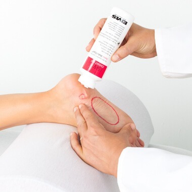 The treatment will be given in the ESWT Department at Fitter Feet for Life. You will be asked to lie on your front with your legs supported by a pillow. The clinician will put some ultrasound gel on the injured area and then place the hand piece of the device on the gel. The ESWT is delivered using a hand piece – it delivers compressed air pulses through the ultrasound gel. Each treatment will take approximately five minutes.