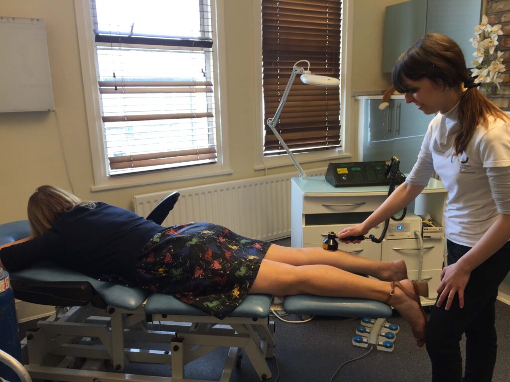 Nerve entrapment: The laser settings can be used to create two changes. Firstly it can reduce nerve conduction and therefore nerve pain. Secondly nerves are often trapped in scar tissue. Laser helps the scar tissue mature and shrink. Both actions are useful to help treat painful nerve entrapment syndromes, e.g. Morton’s neuroma and tarsal tunnel syndrome.